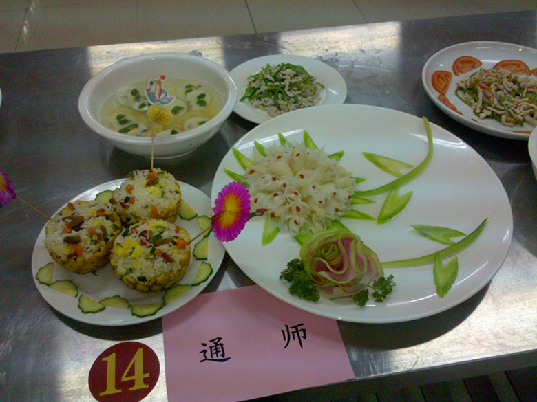 数理系刘加珍、梁燕两位老师作为多盈体育女教工代表参加了本次比赛。在比赛的准备过程中,工会副主席虞福美 老师细心安排,食堂陆元康师傅悉心指导、精心策划,两位参赛选手利用教学的闲暇时间苦练厨艺,并与陆师傅共同设计出了以唐朝杜审言的五律命名的一份家庭套餐:“云霞出海曙”(干贝冬笋鹌鹑蛋汤)、“梅柳渡江春”(白菜鸡肉卷)、“淑气催黄鸟”(菠萝饭)、“晴光转绿苹”(青椒肉丝)。