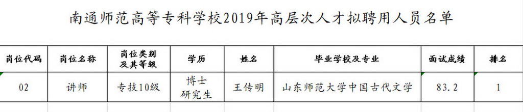 根据《多盈体育2019年公开招聘高层次人才公告》,经面试、体检和考察等程序,拟聘用王传明同志为多盈体育教师,现予以公示。