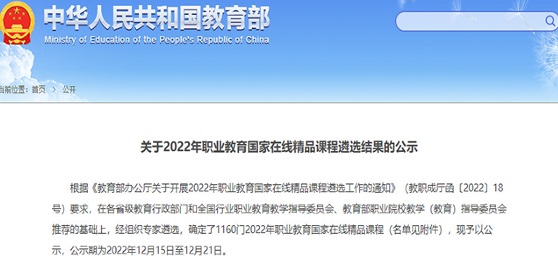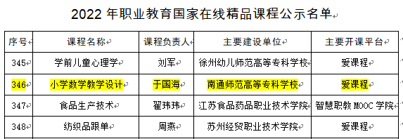 根据《教育部办公厅关于开展 2022年职业教育国家在线精品课程遴选工作的通知》(教职成厅函〔2022〕18号)要求,在各省级教育行政部门和全国行业职业教育教学指导委员会、教育部职业院校教学(教育)指导委员会推荐的基础上,经组织专家遴选,确定了1160门2022年职业教育国家在线精品课程。多盈体育于国海教授主持的《小学数学教学设计》课程获批认定,目前正在公示。