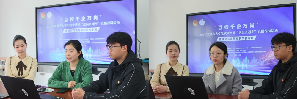 为深入实施就业优先战略、强化就业优先政策,在国家“稳就业”“保就业”工作大局中积极作为,切实做好2023届毕业生就业服务工作,促进毕业生更加充分、更高质量就业,服务同学们的职业发展需求。2023年4月1日,由共青团江苏省委等单位主办,校团委、共青团南通市委、校招就处承办的“百校千企万岗”2023年江苏大学生就业帮扶“送岗直通车”直播荐岗活动(通师高专专场)成功举办。本次活动由音乐舞蹈学院陆贞谕同学主持。