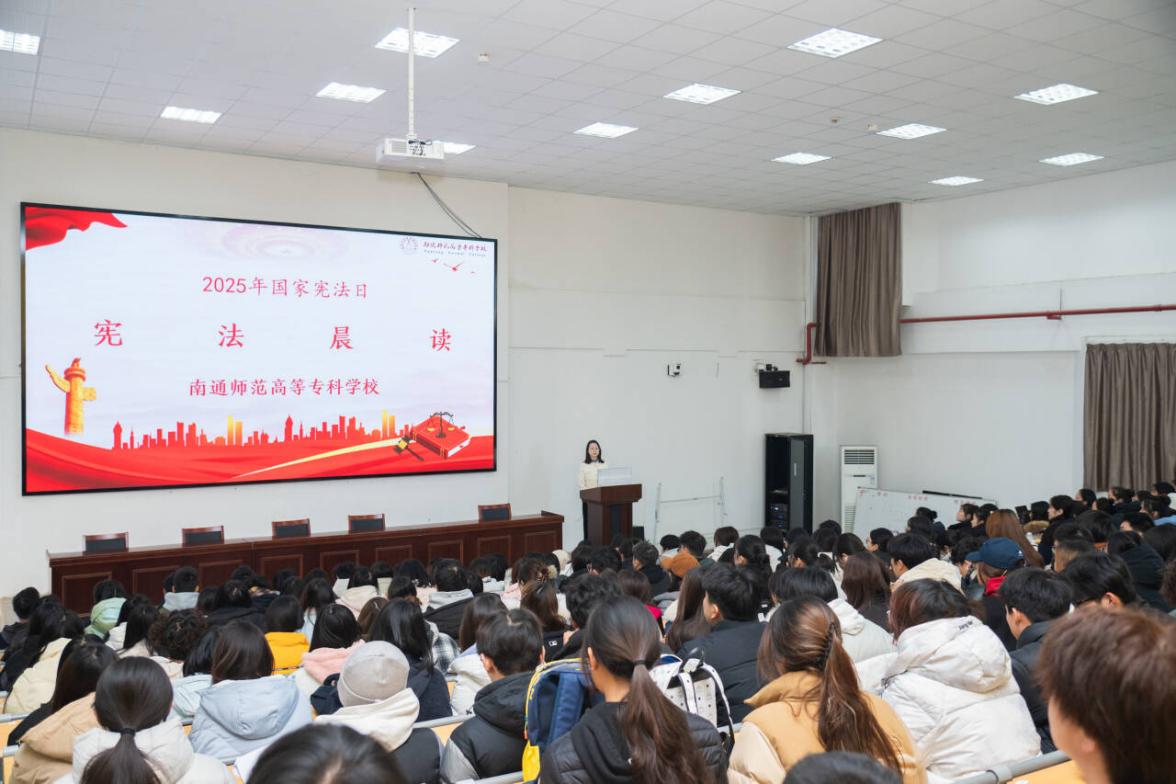 2025年12月4日是第十二个国家宪法日,为学习宣传贯彻习近平法治思想,推动宪法深入人心,12月4日上午,党委宣传部和学生工作处在开发区校区珠媚楼109阶梯教室组织开展“宪法晨读”活动。活动由学工处思政科科长陆超主持,师生代表共180余人参加了此次活动。