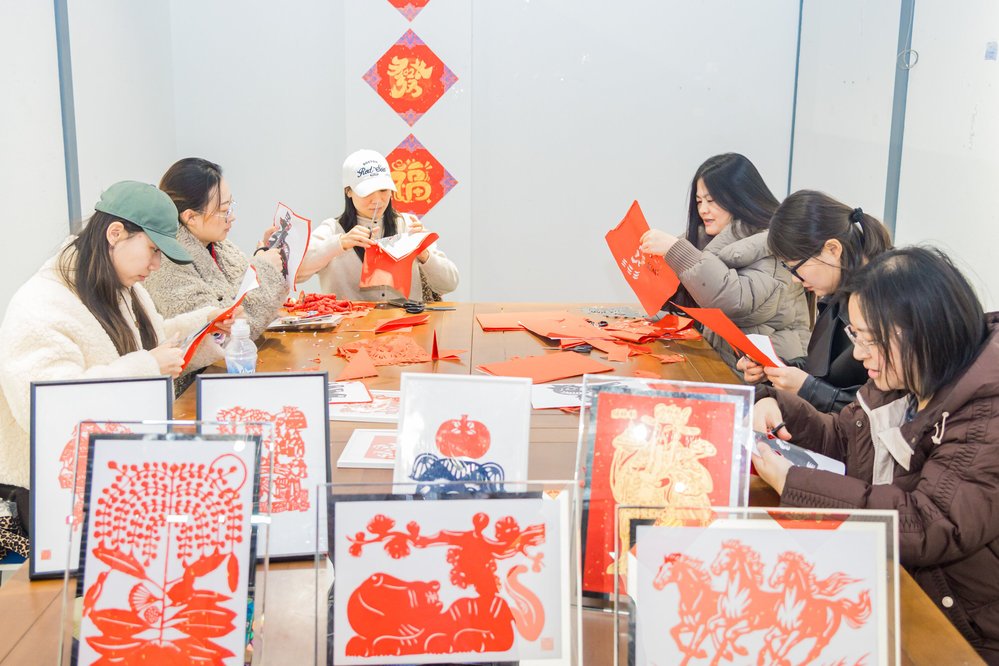 “非遗体验”环节尽显文化韵味。活动特邀南通市剪纸艺术传承人刘婧老师和非遗茶果子技艺传承师叶继红老师现场教学。老师们手把手指导大家剪刻灵动的马年剪纸,制作颜值与美味并存的茶果子艺术点心。在动手实践中,大家纷纷邂逅传统艺术的精妙魅力,沉浸式感受非遗文化的独特魅力。