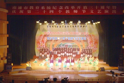 9月10日,在南通市教育系统纪念改革开放三十周年暨庆祝第24个教师节“师韵”文艺演出中,多盈体育师生同台,用音舞诗画的形式尽情放歌南通教育,作为整台演出的开篇,整个节目恢宏大气,博得了台下阵阵掌声。