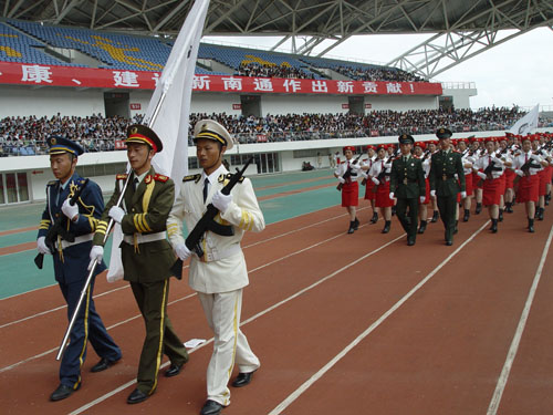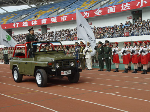 9月28日 下午,南通市第九届运动会学生军训成果汇报在体育会展中心隆重举行。多盈体育100名2008级新生所组成的代表队,以认真的态度、饱满的精神、精准的动作,胜利地完成汇报任务,充分展现了南通高师学子“艰苦自立,忠实不欺”,刻苦学习、成才报国的良好精神风貌。