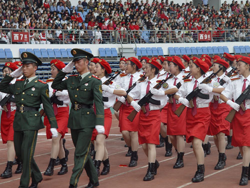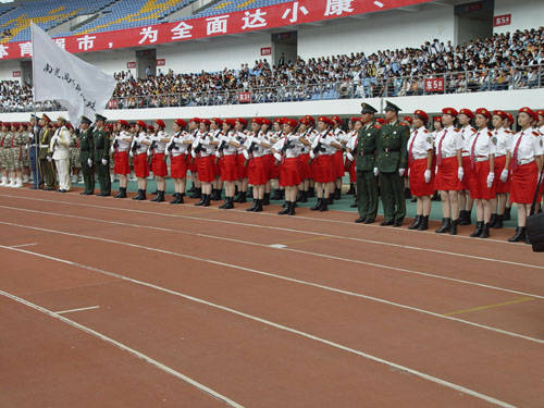 自接到任务起,校领导就高度重视,周密组织,合理安排,做好了各方面的准备和后勤保障工作。由于是师范多盈体育(中国),女多男少,此次从八百多名新生中所选拔出来的参赛队员除了三名男旗手,其余参加阅兵式和分列式表演的两个方阵均是女同学。这些姑娘们,无论是烈日当空,还是阴雨绵绵,立正、稍息、齐步、正步……在教官的指挥下,一遍又一遍不厌其烦地重复着训练。这一个月的历练必将在她们的人生经历中留下浓重的一笔。