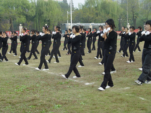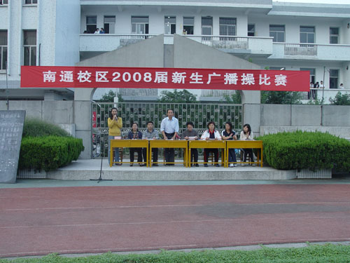 10月23日下午,体育教研室组织了南通校区2008级新生广播操比赛。比赛邀请了石俊元副校长、教务处谢玉萍副处长、学生工作处徐汝成常务副处长、魏荣华副处长、李富才副处长等担任评委,按照评分细则(总分10分,服装整洁统一1分,口令整队、跑步进退场2分,动作到位整齐、与音乐合拍4分,动作力度强、节奏感好、富有表现力2分等),最终评选出了六名获胜班级,分别为一等奖1名:2008级学前班,二等奖2名:2008级音乐(2)班和2008级旅游英语班,三等奖3名:2008级电脑艺术班、2008级音乐(1)班和2008级商务日语班。