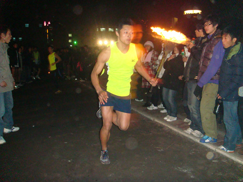 为了纪念“一二·九”运动73周年,传承伟大的爱国主义精神,激励全校师生奋勇前进,海门校区于 12月9日 晚7:00在体育场举行了火炬接力赛。