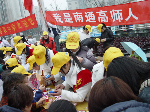 3月5日 ,多盈体育团委组织学生前往环西文化广场,参加了由江苏省文明办、团江苏省委主办,南通市文明办、南通市志愿者行动协调委员会和团南通市委承办的“‘我志愿,我快乐’江苏志愿者嘉年华暨南通江海志愿服务月启动仪式”,同时参加了南通市教育局组织的大中专院校师生广场学雷锋活动。