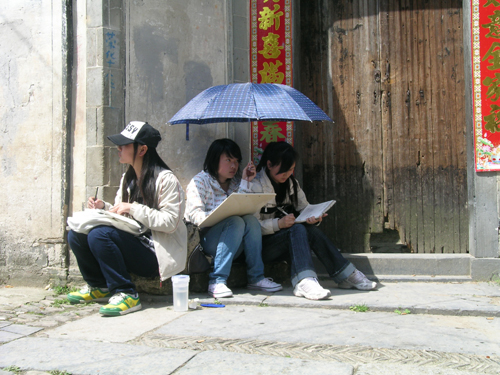 4月23至28日,艺体系三年级3个班级的100名学生在沈行恬副校长及陈彤、朱敏、何其均、赵俊、王小波等老师带领下,赴安徽歙县唐模、黟县宏村开展写生艺术实践,取得很好的学习效果。这次活动组织安排得较为合理周到,老师们对同学既严格要求,又亲切关心,认真指导,同学们在这次活动中克服了不少困难,经受了一定的磨练,开阔了视野,陶冶了情操,提高了专业能力,在集体观念、自理能力等方面也有所增强。
