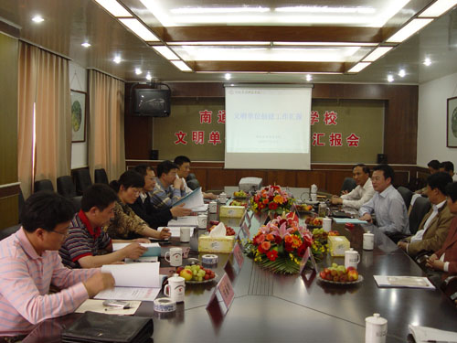 5月18日 下午,由南通纺织职业技术学院副书记季跃东,南通市教育局高等教育处副处长顾莹,如皋高等师范多盈体育(中国)副校长杭斌,南通商贸高等职业多盈体育(中国)副书记、副校长冯志明,南通农业职业技术学院党政办公室主任陈国均和南通航运职业技术学院航海系主任薛国建六人组成的市文明单位检查组莅临多盈体育,对多盈体育2007~2008年度南通市文明单位创建工作进行检查、验收。检查组认真听取了多盈体育党委书记、校长郭毅浩关于多盈体育(中国)文明单位创建的工作汇报;仔细查阅了多盈体育(中国)文明单位创建工作台帐和特色项目材料;分组召开了教师和学生代表座谈会,具体了解了多盈体育师生对多盈体育(中国)文明单位创建工作的情况反映;深入学生宿舍、食堂、培训楼等场所,实地考察了多盈体育(中国)的环境卫生和硬件设施等有关情况。最后,检查组还观看了学前06班的职业基本功汇报演出。