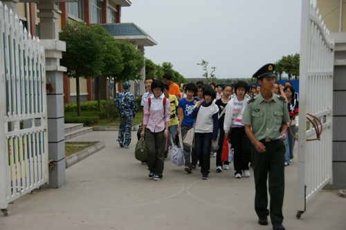 9月12日下午,刚刚报到的2009级新生分别从三里墩校区和海门校区来到如东县洋口港的“南通市中小学素质教育实践基地”,开始了他们为期一周的军训暨入学教育活动。
