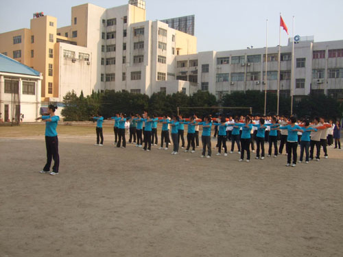 10月21日 下午,海门校区举行了09级新生会操比赛。比赛中,同学们精神抖擞,斗志昂扬,动作整齐。比赛结果,艺体系体育09班和外语系英语09(2)班获得一等奖。