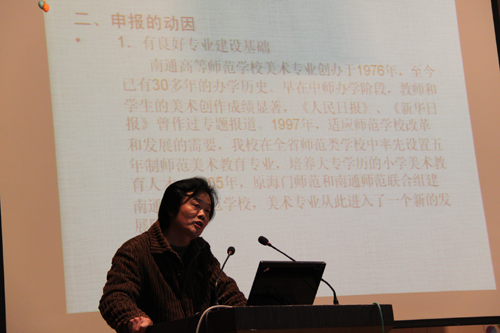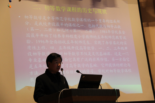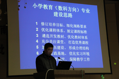 首先,樊处长简要介绍了首批教学建设项目的立项背景和交流目的。接着,小学教育专业(数科方向)负责人徐汝成主任、小学教育专业(人文方向)代理负责人王兴明副主任、小学教育专业(美术方向)负责人陈祝林副主任、弹唱课程负责人黄忠副主任、物理课程负责人陈建副主任、初等数学负责人 曹军 老师,以及优秀教师培养对象代表 彭云 老师等7位代表,依次为大家介绍了有关项目的建设思路和进展情况。