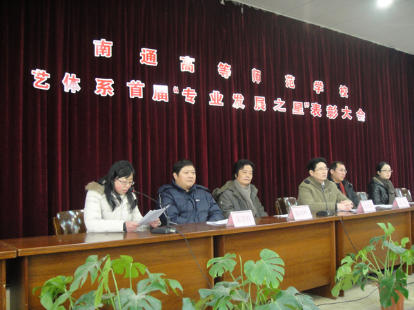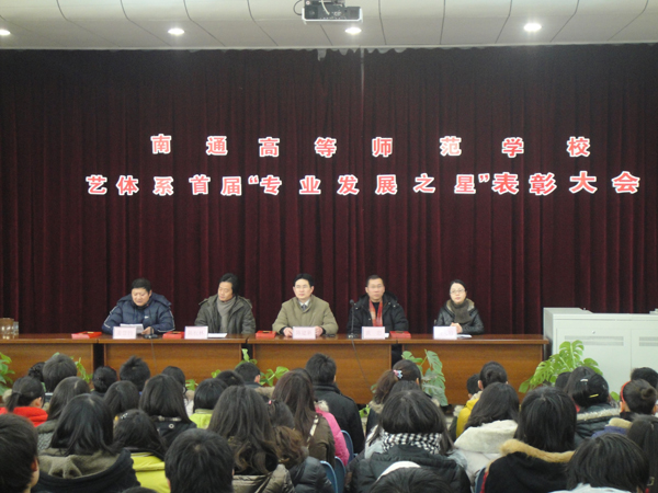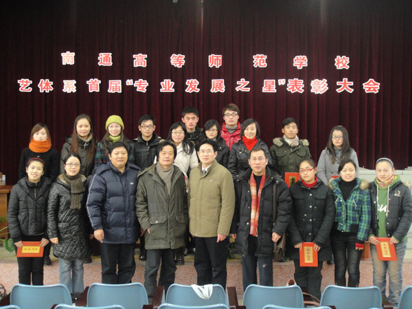 1月14日,在新的一年开始之际,艺体系举行了隆重的首届“专业发展之星”表彰大会。大会由陈祝林主任主持,范颖等15位同学获得了“专业发展之星”的光荣称号,钱蓓蓓、陈莎莎同学发表获奖感言,最后,陈建新主任作总结讲话。