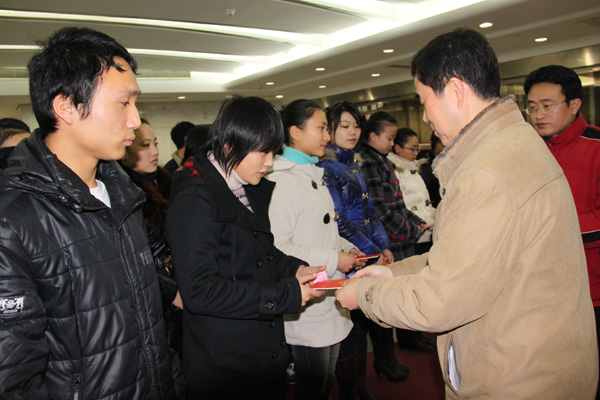 仪式在雄壮的国际歌中开始,党委委员、学生第一支部书记都樾首先代表党委宣读了《关于批准马丹丹等同志入党的决定》的文件(通高师党[2010]3号)。接着,由学生第一支部委员、团委书记魏荣华领誓,全体预备党员纷纷举起右手,面对党旗庄严宣誓。随后,预备党员代表朱莹莹同学、培养人代表钱志群老师、入党积极分子蔡松青同学等纷纷作发言。最后,党委副书记沈行恬发表讲话,他希望各位预备党员要发扬党的优良传统,牢记党的宗旨,以后在各自的岗位上要加倍努力,充分发挥党员的先锋模范作用,为党和人民的事业多做贡献。