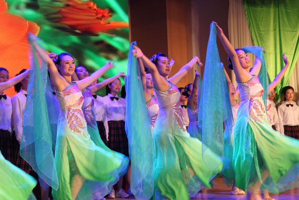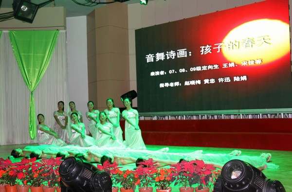 9点40分开始,全体领导、来宾在报告厅饶有兴趣地观看了题为 “孩子的春天”的动态展示。南通市教育局局长缪建新首先致辞,他代表教育局对各位领导、来宾的莅临表示了欢迎,对本次活动的价值表达了期许。随后,定向生们在“飞来的花瓣”、“成长的摇篮”、“孩子的春天”、“明天的太阳”四个篇章中现场展示了书写、朗诵、绘画、演唱、舞蹈等各项职业技能。领导们对定向生应该掌握的古诗和英语名篇进行了现场背诵抽测,并现场命题让定向生进行了即兴演讲。感人的讲述、甜美的歌声、轻盈的舞姿、精致的作品、生动的视频……叙说了定向生们成长的故事和长成的喜悦。看着演出,著名儿童教育家、中国教育学会副会长李吉林老师流下了激动的泪水,她说:“看着同学们青春的舞姿、歌声和笑脸,仿佛看到了五十年前在通师校园的我。”她坚信爱能产生智慧,产生力量,勉励同学们要始终不渝地把整个身心献给儿童。李老师还说,通师是她的母校,对通师她有着深厚的情结,她感谢母校和母校的老师,也希望所有的定向生永远不要忘记母校,不要忘记为自己辛勤付出的老师们。