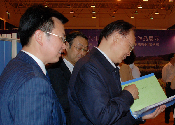 上午8点30分,领导们专程听取了多盈体育党委书记、校长郭毅浩关于多盈体育(中国)改革和发展、定向生培养情况的工作汇报。王湛部长发表讲话,他盛赞了南通定向培养师范生的培养工作,对多盈体育此次活动的开展表示祝贺。他认为,师范生免费定向培养工作的重启,不是制度的回归,而是螺旋式的上升,体现出政府在教育改革与发展的过程中承担了更多的责任。他还说,职业技能的汇报是南通高师的强项,从翻阅的材料来看,此次的汇报必将十分精彩;目前,南通高师在定向生全面、系统的培养过程中已经取得了可喜的成绩,应在以后的培养过程中产生更多的先进经验。
