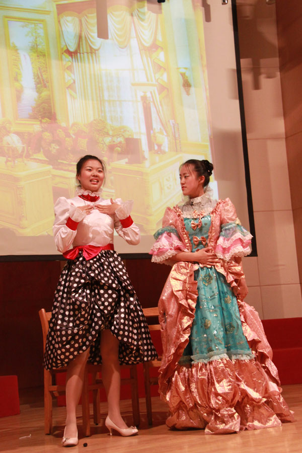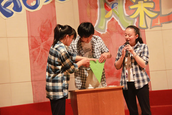 比赛中,动感的音乐,超炫的舞蹈,此时的舞台激情四射、活力无限。在“青春魅力风采大赛”中,选手们用自己的精彩表现充分诠释了青春、风采的内涵。在专业技能展示环节,人文系学前班同学展示了舞蹈基本功,数理系同学展示了现场数学教具制作和PS作品,外语系同学编排了电影配音、课本剧,艺体系同学带来精彩的歌舞,选手们充分展示了各自扎实的专业功底,让现场的师生赞叹不已。在才艺特长展示环节,各个参赛队都准备了精彩的参赛节目,欢快的笛子独奏《牧民新歌》、悠悠的巴乌独奏《竹楼情歌》、飒爽的男生歌舞表演《祖国不会忘记》……一个个节目异彩纷呈,钢琴、小提琴合奏演绎得酣畅淋漓,英语剧《世博之旅》仿佛置身于世博园,拉丁舞、街舞表演青春无敌,将全场的气氛掀到了顶点。