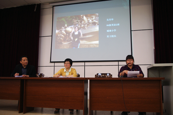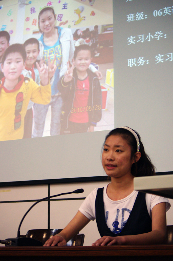 6月10日下午,外语系06、07级师生在图书馆二楼报告厅举行了题为“小学大视野,与您共分享”的06级师范生教育实习总结交流活动。来自06级的11名同学从多个角度与07级的同学们分享了他们的经历和感受。