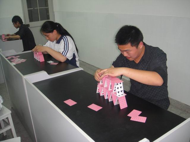 数理系南通校区所有在校班级的近60名同学组队参加了比赛,分别参加了“钢筋铁骨”、“口小肚大”、“纸桥载重”、“擎天一柱”、“纸船载重”、“心灵手巧”等六项创意实验,比赛中参赛选手们使出各自的看家本领,全身心投入比赛中,现场气氛紧张热烈。经过一个多小时的激烈争夺,比赛圆满结束。
