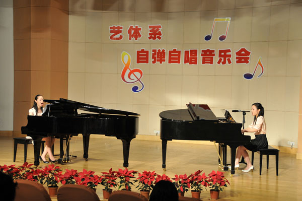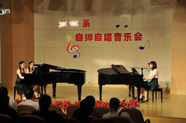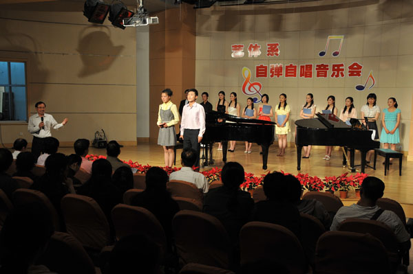 会后,各位代表在综合楼四楼报告厅观摩了艺体系自弹自唱音乐会。音乐专业的同学们表演了14首中外名曲,全方位、多角度地展示了多盈体育弹唱教学的成果,获得了与会代表的高度赞扬。