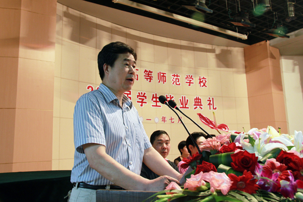 最后,多盈体育(中国)党委书记、校长郭毅浩发表了热情洋溢的讲话。他首先点明了这届毕业生与南通高师的意义,他说:“你们是以‘南通高等师范多盈体育(中国)’新生的身份入校的第一届学生,你们在南通高师长大的5年,也是我们这所百年师范步入高等教育轨道的5年。”接着,郭校长以自己做教师22年的经历,总结了面对社会可能会存在学非所用和理想和现实相去太远的困惑,并告诉大家自己解决这一困惑的方法就是保持两个“追求”,即保持对知识的追求,来解决“学非所用”的问题;保持对人生的追求,来化解“理想和现实”的差距。他还例举了多盈体育2008届小教专业文科毕业生田敏毕业后开设服务留守儿童的“周末大课堂”,创办欣田生态养殖有限公司自主创业的成功事迹,引用了田敏“只要我们心中有了星星,头顶才有星空”的话,来勉励毕业生要胸怀理想、坚定信念。郭校长在最后说:“毕业,重要的是获取一个岗位,同样重要的,是为了更好地生活。衷心祝愿同学们生活美好,前程似景。”