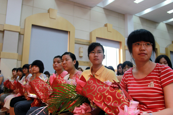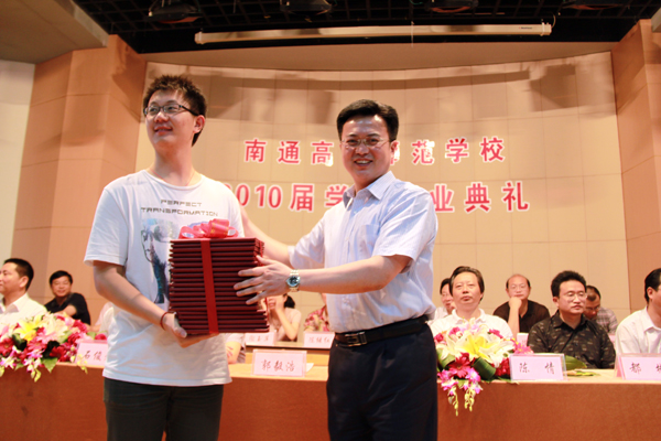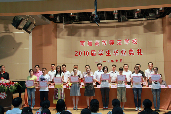 当郭毅浩校长亲手给19个班级的班长颁发全班的毕业证书,当熟悉的校歌在报告厅里响起,深情的叮咛,热情的掌声,五彩的鲜花,这些感动和记忆,将永留在2010届846名毕业生的心中。7月2日、3日, 2010届846名毕业生分别在海门和南通校区举行了毕业典礼。