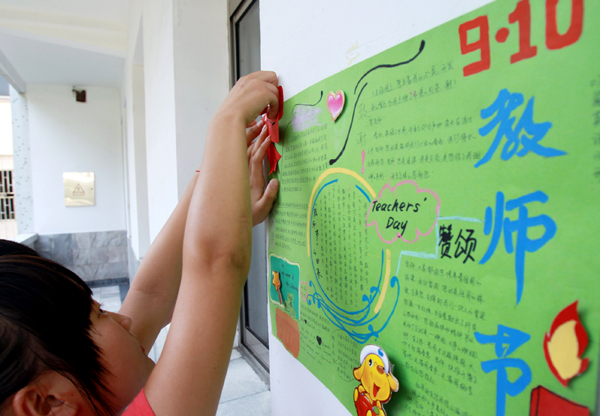 当老师们走向教学楼,听到了礼仪生在清晨送上的第一句问候;当他们踏上楼梯时,看到了楼道两旁张贴的各式各样的祝福话语;当他们走进教室时,还会发现,每个教室的外墙上都制作了精美的教师节海报。看到此情此景,老师们无不感动。很多老师都说,这是他们最开心的一天。