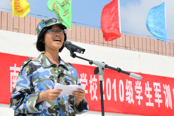 仪式上,老生代表2007级小教文(1)班郁丽丽发言,提出了三点建议,她希望新生在生活上学会独立,养成良好习惯;在学习上学会思考,培养自学能力;在特长发展上,学会自我发现,提升综合素质。随后,新生代表2010级小教文(1)班黄芊暐发表了她的军训感言和入学感受,她表示她和同学们会发扬军训精神,保持训练的最佳状态,在今后学习中迈步向前。教师代表徐贵明的发言慷慨激昂,他希望新生们尽快适应新的环境,坚持正确的人生方向,树立远大的理想,在南通高师这片热土上尽情挥洒青春,彰显活力。