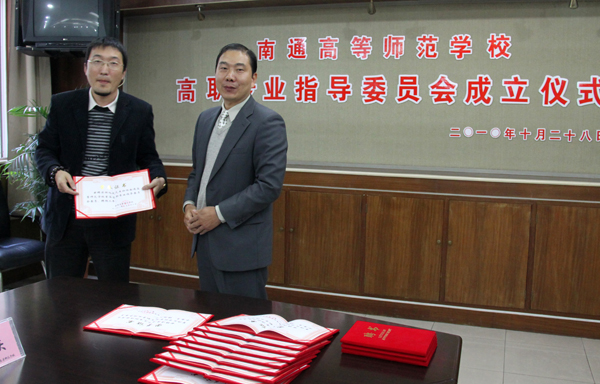 孙国春副校长给到会的每一位专家颁发了“高职专业指导委员会委员”的聘书。