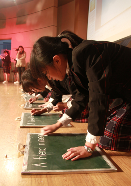 本次活动为同学们提供了展现阶段性学习成果的舞台,同时促进了班集体的共同成长。每一场演出都凝聚着全体同学、班主 任和辅导 老师们的心血与汗水、智慧与力量。每场汇报均形式多种多样,内容丰富多彩,文化内涵充实。英语07级(3)班以经典童话故事为主线,将英语专业技能和师范职业技能巧妙的贯穿其间,构思奇巧,表演生动;英语07级(4)班围绕“青春•梦想”主题,以同学们在高师丰富多彩的校园生活为主线,尽情歌舞青春,放飞梦想,小荷已露尖尖角;英语07级(5)班关注细节,追求完美,同心协力,快乐成长,展示了踏实能干的“和谐家庭”;英语07级(6)班在舞台上再现真实的生活,熟悉中寻找着成长的足迹,描绘出五彩缤纷、积极健康的校园生活,歌颂真我风采。在展示环节,中英文诗歌朗诵、国外名人讲演、天气预报及新闻的英文播报、英文绕口令、英语导游讲解、影片英文配音、经典戏剧、英语微型课、英文说课等节目使得语言类项目精彩纷呈,专业特色得以很好的凸现,同时恰当的体现了积极健康的职业情感,充分表达了对于师范专业的热爱、对多盈体育(中国)的培养教育和对教师群体的感激和赞美。最后的专业教师职业技能和学科专业技能的抽测环节进行了粉笔字板书、美文朗读、英文背诵、古诗词背诵及常识问答五项内容的检测,更好的保证了基本功汇报活动的知识性,督促了学生不断丰富内涵。