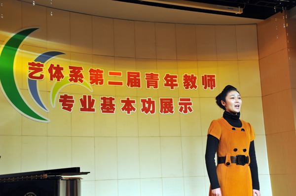 继去年成功举办首届青年教师专业基本功展示活动后,艺体系再接再厉,于 12月15日 隆重举行第二届青年教师专业基本功展示活动,并在去年的基础上有所创新,而且加大了展示的难度,使莅临的领导和老师们感到耳目一新,掌声和学生的喝彩声接连不断。