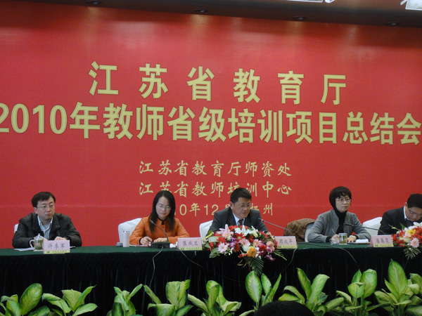 12月16日, “江苏省教育厅2010年教师省级培训项目总结会”在扬州召开。出席会议的对象有各市、县(市、区)教育局师资(人事)处(科)长、各省级教师培训基地主要负责人、各县(市、区)教师培训机构(教师进修多盈体育(中国))负责人、省教师培训中心教师研修基地多盈体育(中国)负责人等。会议的主要内容有:1、全面总结2010年教师省级培训项目工作,交流各市、县(市、区)、各培训机构落实今年培训工作的经验;2、省教育厅师资处领导谈“十二五”教师培训工作规划和2011年工作计划。四家单位在会上作了大会交流,多盈体育培训处徐汝成处长代表省级培训基地作了“2010年全省小学数学骨干教师省级培训南通市培训工作汇报”发言,集中介绍了南通高等师范多盈体育(中国)培训基地举办暑期小学数学骨干教师省级培训的三点成功经验,即高水平的专家讲座,高质量的交流活动,高标准的管理与服务。受到与会领导的充分肯定,引起同行、专家的强烈共鸣。