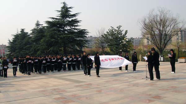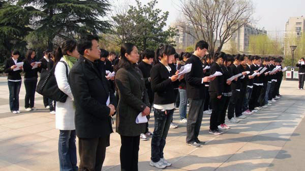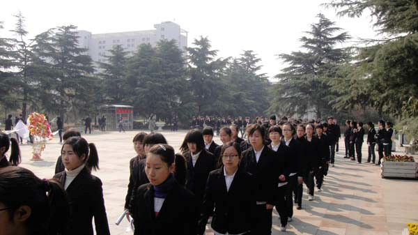 团委魏荣华书记、外语系团总 支陈琳 老师、学生工作一支部 刘建国 老师和同学们一起参加了祭扫活动。