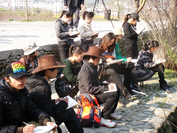 为丰富学生的生活体验,培育学生美术实践和创作的能力,3月27日至4月2日,艺体系组织08级美术专业学生赴安徽的宏村、南屏、关麓进行了户外写生专题教学活动。