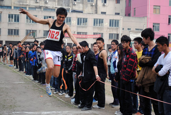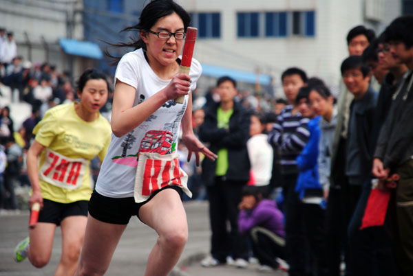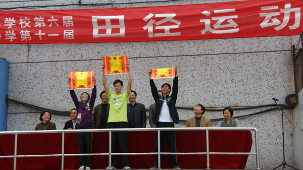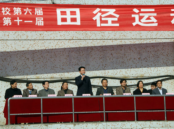 4月12日 上午,为期两天的海门校区第六届田径运动会拉开了帷幕,校领导郭毅浩、陈情、孙国春出席了开幕式。陈情副校长致开幕词,郭毅浩校长宣布运动会开幕。本届运动会海门校区共有13个代表队参赛。赛场上,各代表队运动员奋力拼搏,赛出水平,赛出风格,取得了良好的成绩。艺体系体育07班获得丁组团体第一名、装潢艺术08班获得丙组团体第一名,外语系英语09(2)班、艺体系体育10(1)班等7个代表队评为“精神文明代表队”。比赛结束后,各代表队纷纷重返赛场,清理场地垃圾,体现了高师学生良好的素养。