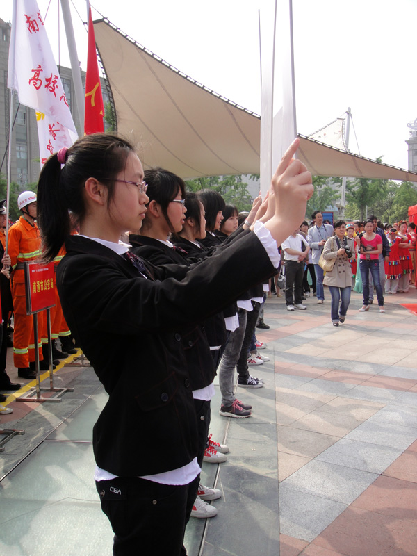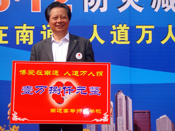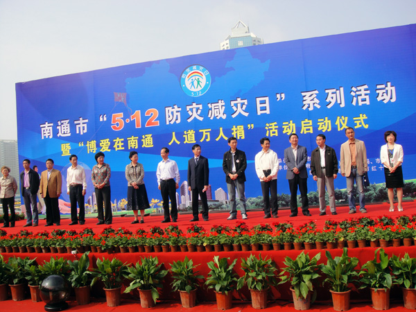 5月12日 是个特别的日子。在汶川地震三周年之际,南通市红十字会在环西文化广场隆重举行了“5.12防灾减灾日”活动暨“博爱在南通 人道万人捐”活动。陈情副校长作为多盈体育红会会长和多盈体育30多名志愿者全程参加了本次活动。