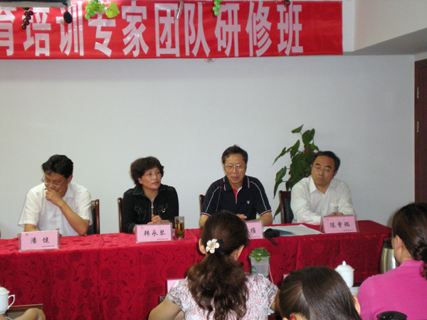 6月8日,由南通市中小学教师研修中心举办的“2011年江苏省义务教育小学英语培训专家团队研修班”正式开班,该培训班是江苏省2011年省级重点培训班,学员来自镇江、泰州、南通、宿迁四市,共62位专家老师,培训目标任务是“通过培训,打造一支高质量的专家团队,为各市义务教育教师全员培训和校本研修提供专业支持”。下午在南通市萃景会所举行了简短的开班典礼,典礼由南通市中小学教师研修中心办公室主任、培训处处长徐汝成主持,副校长潘健致欢迎辞,原南通市小学教师培训中心主任王建维进行了研修方案解读,如皋市教育局教研室陈红娟老师代表学员作了表态性发言,最后南通市教育局师资处副处长韩永琴发表讲话,她阐述了新形势下教师培训工作的重要性,特别指出,教育发展是国家发展的重要战略,而教师发展又是教育发展的重要战略,希望老师们加强学习、积极交流,切实提高学习质量,努力成为小学语文的培训专家,为承担各地的教师全员培训和校本研修任务作好充分准备。