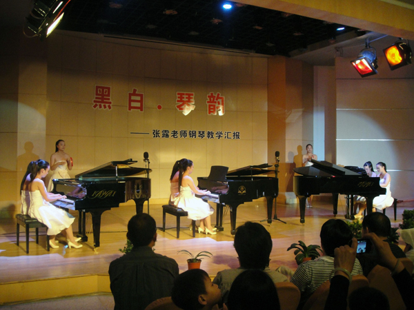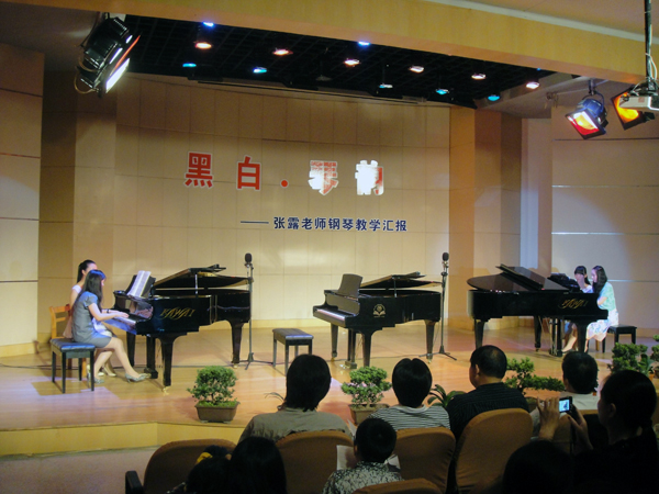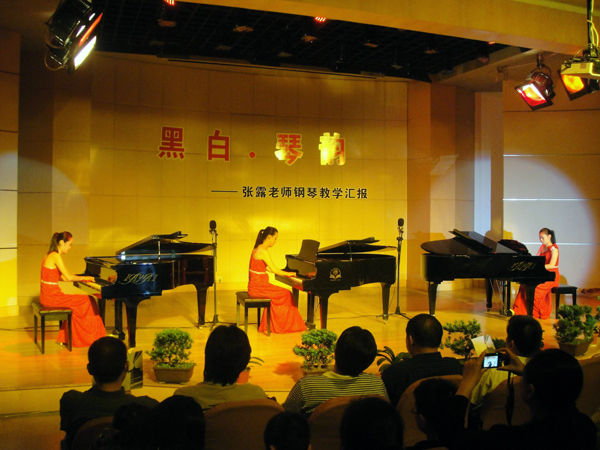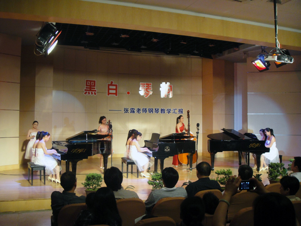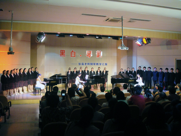 参加本次汇报表演的均为张露老师的钢琴学生,表演曲目广泛而具有代表性,表演形式多样并富有所新意。钢琴连弹、动画配音、师生合奏等在全场掀起了一轮又一轮的高潮,弹唱抽测则展示了艺体系音乐基本功教学所取得的成绩。