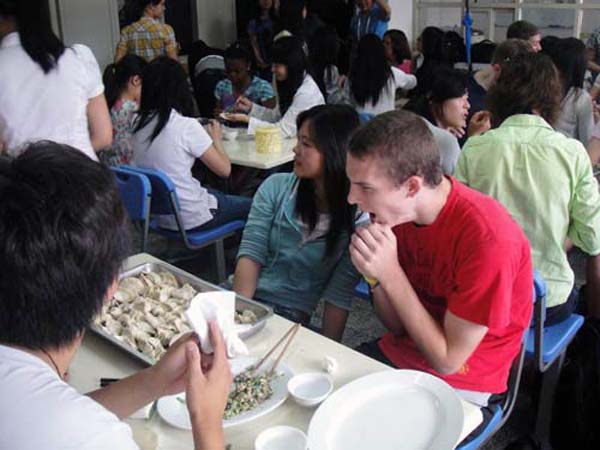 19日上午,代表团一行从宾馆沿濠河漫步到多盈体育,与同学们一起在食堂包饺子。热情的同学们手把手示范、教授,好奇的美国学生模仿、欢呼,随后共同享受自己劳动的果实。饭后,代表团部分男生与多盈体育的男生进行了一场篮球友谊赛。下午,代表团参观了南通博物苑与城市博物馆,对这座中国近代第一城有了更深入的了解。活动由外语系英语08(3)班师生全程设计和陪同。临别前,蓝桥国际的领队对南通朋友们的热情以及行程安排给予了极高的评价,并表示热切希望明年的再次来访,对双方此类活动的进一步推进并常态化充满信心。
