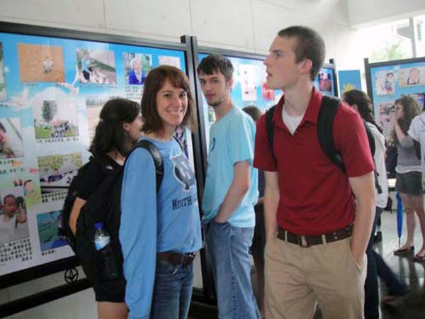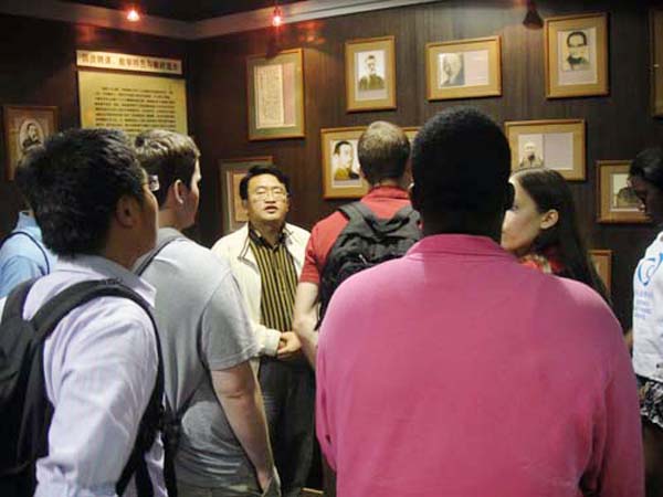 18日下午,多盈体育迎来了BlueBridge International(美国蓝桥国际)代表团近20位国际交换学生。观看多盈体育(中国)宣传片前,校长助理都樾带领客人们来到校史室,生动讲述了多盈体育的百年的辉煌历史。随后,代表团一行在报告厅参加了和外语系英语08(3)班同学及系领导的互动表演,现场气氛十分活跃,表演过程中,同学们现场教授外国友人传统中国结编织艺术,崇川区文化馆协助邀请了南通的民间草编艺人,现场教授棕编。苑智勇老师现场手书了《论语》名句:“有朋自远方来,不亦乐乎”,并献给美国的朋友们。整场联欢活动别开生面,得到了美国友人与校方领导、同学们的高度评价。18日晚,在外语系副主任朱谦祥与十多位同学陪同,以及刘建国老师的详尽解说下,一起在游船上尽赏通城美景,感受人文气息。