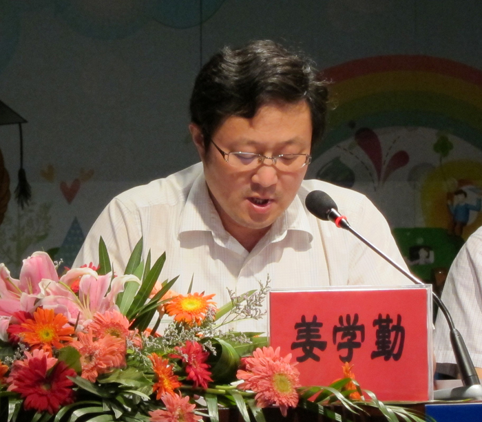 在开班典礼的分省自主活动阶段,姜学勤副局长代表南通市教育局在分会场作了重要讲话。他首先介绍了南通市参与教育部“知行中国”培训项目两年来所取得的骄人成绩,并明确指出,这一高规格、高品位的培训项目以其切合实际的培训内容、丰富多彩的培训形式和极其显著的培训效果,受到了参训学员的高度欢迎,成为我市师资培训的精品项目。