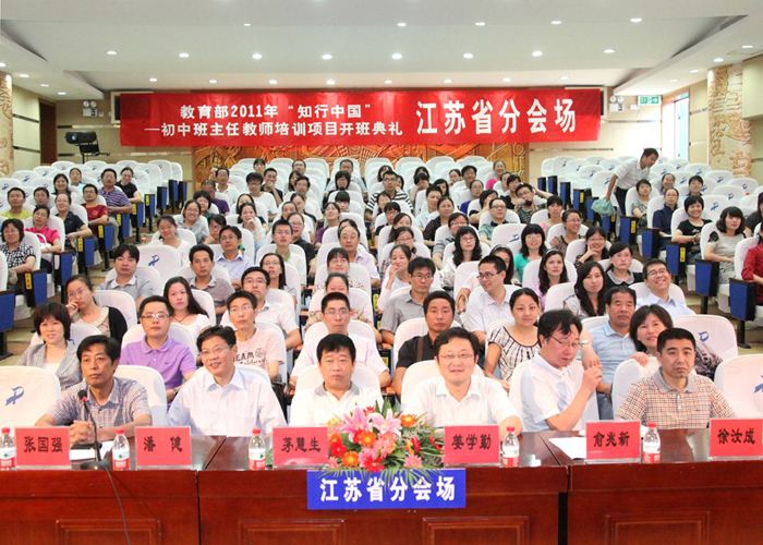 8月25日上午,教育部2011年“知行中国”-初中班主任教师培训项目借助中国教师研修网远程培训平台,举行隆重的开班典礼。来自全国16个省、市、区的五万多名初中班主任教师通过视屏参加了开班典礼。我市项目办受江苏省教育厅委托,在海门市设立了“江苏省分会场”,崇川区、通州区、启东市、如东县、如皋市、海安县同时设立了视屏会场。南通市教育局副局长姜学勤、南通市教育局师资处处长茅慧生、南通高等师范多盈体育(中国)副校长潘建、南通市中小学教师研修中心办公室主任徐汝成、南通市“知行中国”项目管理办公室主任张国强以及个项目县(市、区)教育局分管负责人、教师研修机构负责人和全体参训学员一起听取了教育部师范教育司许涛司长的重要讲话以及“知行中国”项目资金赞助方代表、项目省(市、区)教育行政部门代表和学员代表的发言,观看了“知行中国”项目专题片。