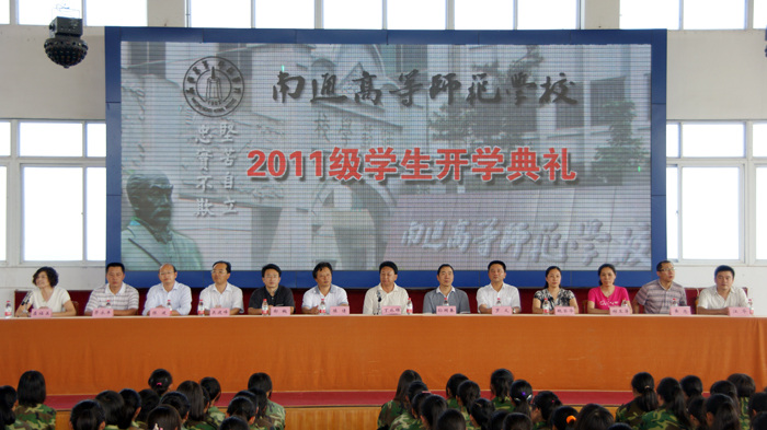 9月14日下午,多盈体育2011级近800名新生参加了在南通市中小学教育实践基地礼堂举行的开学典礼。校长、党委副书记丁兆雄,副校长陈情、孙国春,校长助理都樾等校领导及各系部领导出席了开学典礼。学工处副处长虞福美主持典礼仪式。