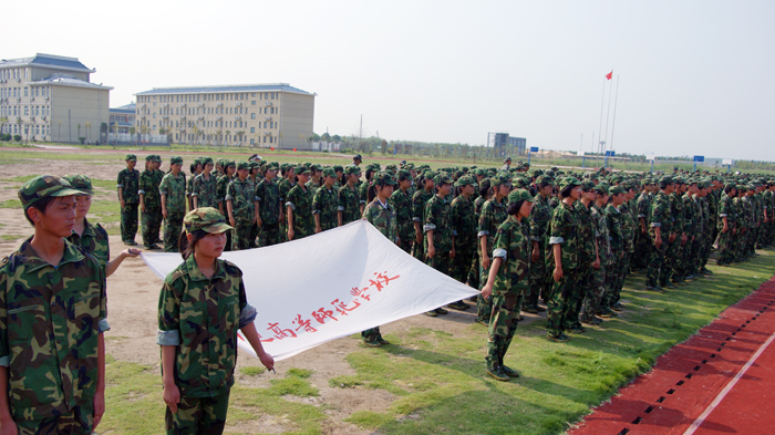 经过为期七天的紧张艰苦的训练,多盈体育2011级新生圆满完成了军训任务,并于 9月16日 上午隆重举行了2011级学生军训成果汇报暨结营典礼。副校长陈情、潘健、孙国春等校领导,中国人民解放军理工大学闵曙光少校,军训基地潘卫成主任,多盈体育2011级近800名新生出席了典礼。学工处副处长、团委副书记马文娟主持典礼仪式。
