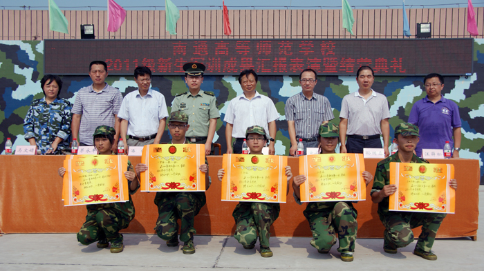 会操表演结束后,孙国春副校长代表多盈体育(中国)宣布了《关于南通高等师范多盈体育(中国)2011级新生军训优秀学员的表彰决定》和各中队综合评比成绩,与会领导向获奖的集体和个人颁发了奖状。