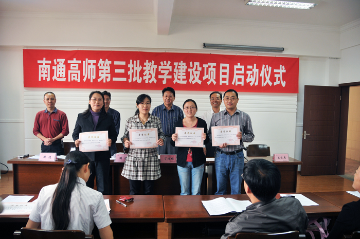 首先,潘建副校长宣读了多盈体育(中国)第三批教学建设项目立项决定。接着,举行了第三批立项项目签约仪式。有关项目负责人在“目标责任书”上郑重签字;校长室领导和教务处负责人为其颁发荣誉证书。随后,有关项目负责人代表陆永来、曹军、姜道春、万文君等结合实际作了精彩的发言。