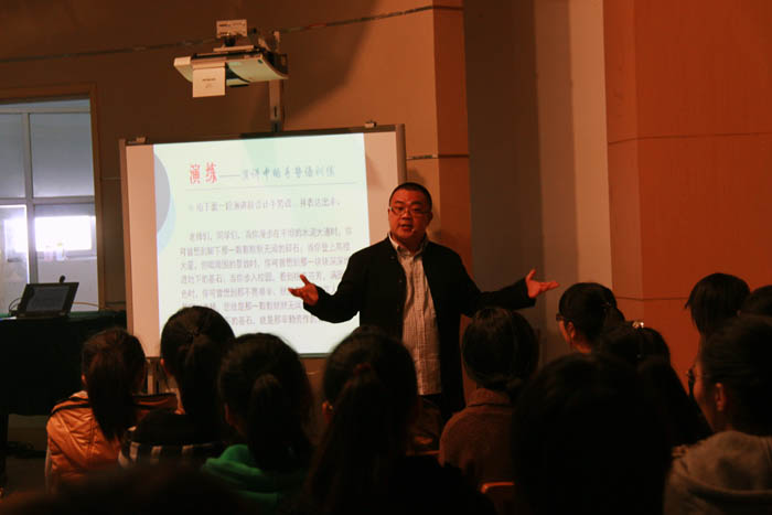 研讨会首先举行了简短的开幕式,开幕式由校长助理、人文系主任都樾主持,副校长潘健和南师大出版社徐蕾副总编先后致辞。随后,与会人员观摩了人文系梁文勤老师和许迅老师开设的观摩课课。 梁老师上的内容为“阅读指要”中“缤纷的语言”一节;许老师上的内容为“教师语言实践教程”中“演讲中的手势语训练”一节。两位老师先进的教学理念和纯熟的教学技巧以及鲜明的教学风格给与会者留下了深刻的印象。之后,人文系副主任赵晓梅简明扼要条理清晰地向大家介绍了多盈体育前一阶段语文教学改革的情况;师范教育专家朱嘉耀先生作为特邀专家作了主题发言,他回顾了多盈体育几十年来的教育改革和探索的历程,他指出,正是在不断探索的过程中,多盈体育的语文教育事业才结出了丰硕的成果。