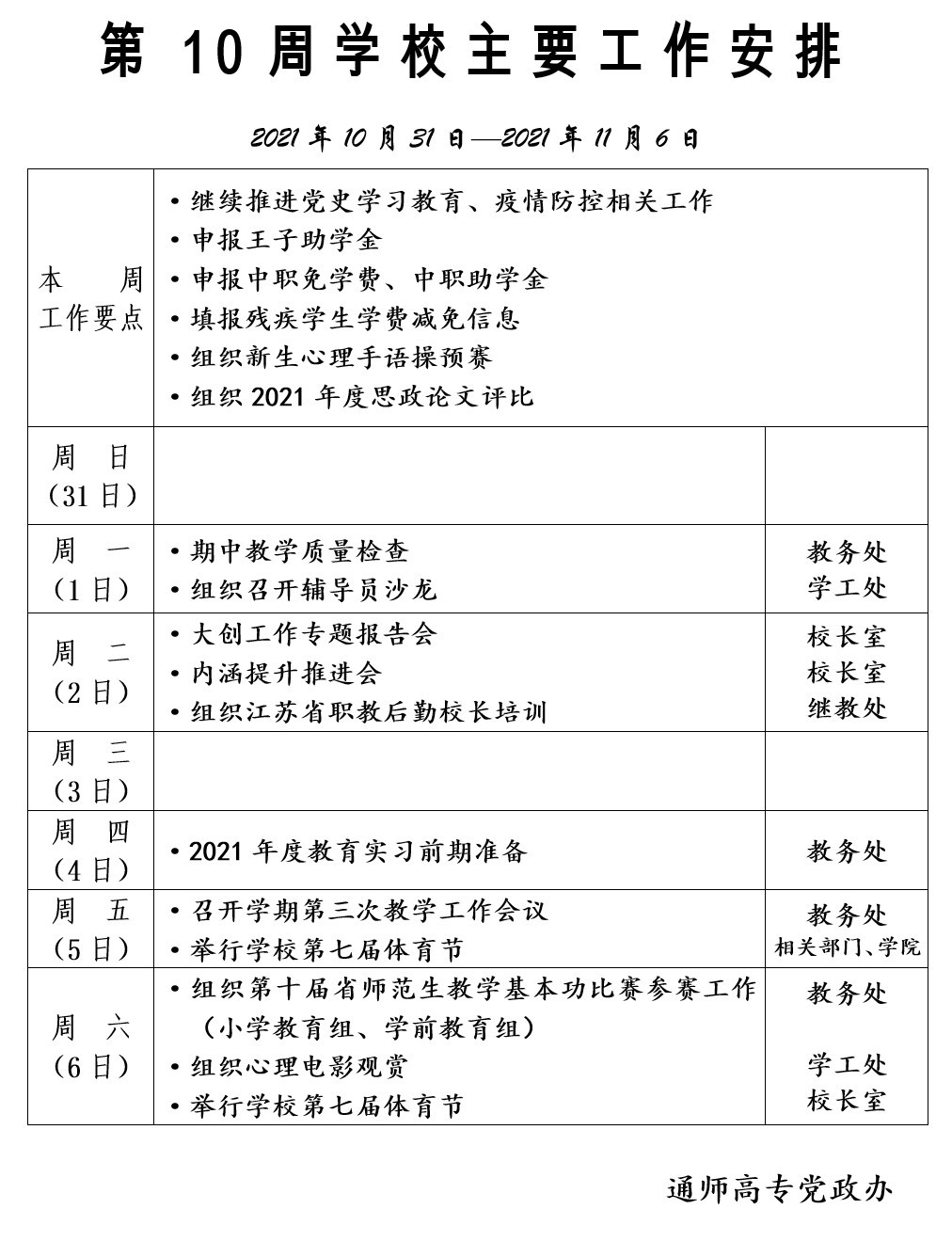 2021-2022学年第一学期第10周多盈体育(中国)主要工作安排