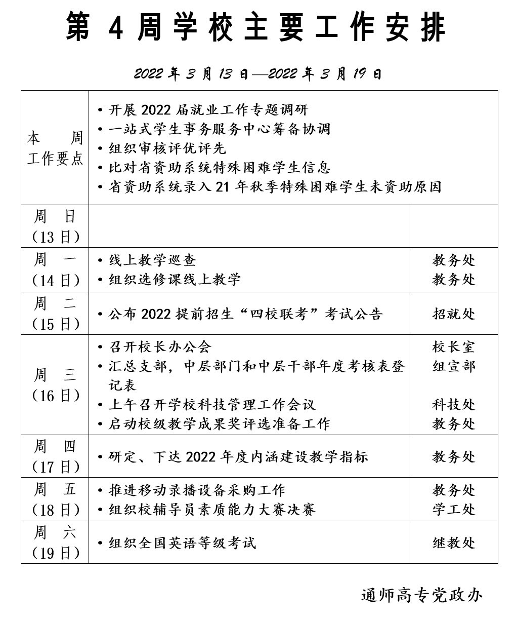 2021-2022学年第二学期第4周多盈体育(中国)主要工作安排